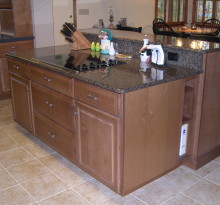 Diamond Brand Cabinets with Granite Top for Center Island.